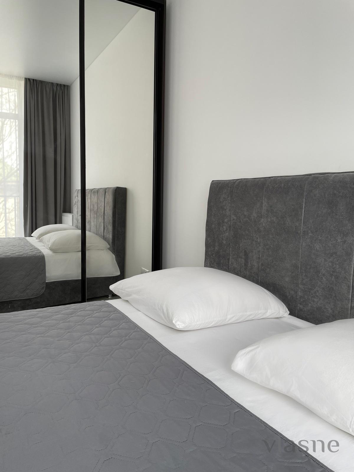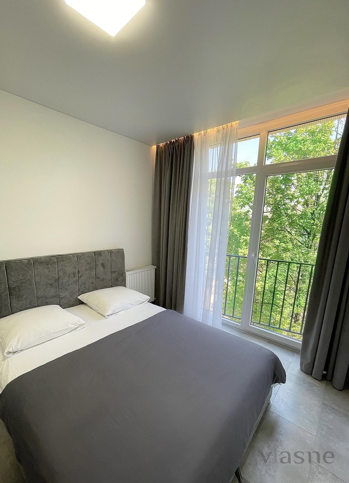 Gorgeous, absolutely new and very quiet apartments in the center of Uzhgorod. A living room kitchen with a sofa and a TV and an adjacent bedroom. Being in a very good new cabin with a parking lot, in a closed area and a children's play area in the apartment is all necessary for a full-fledged stay.