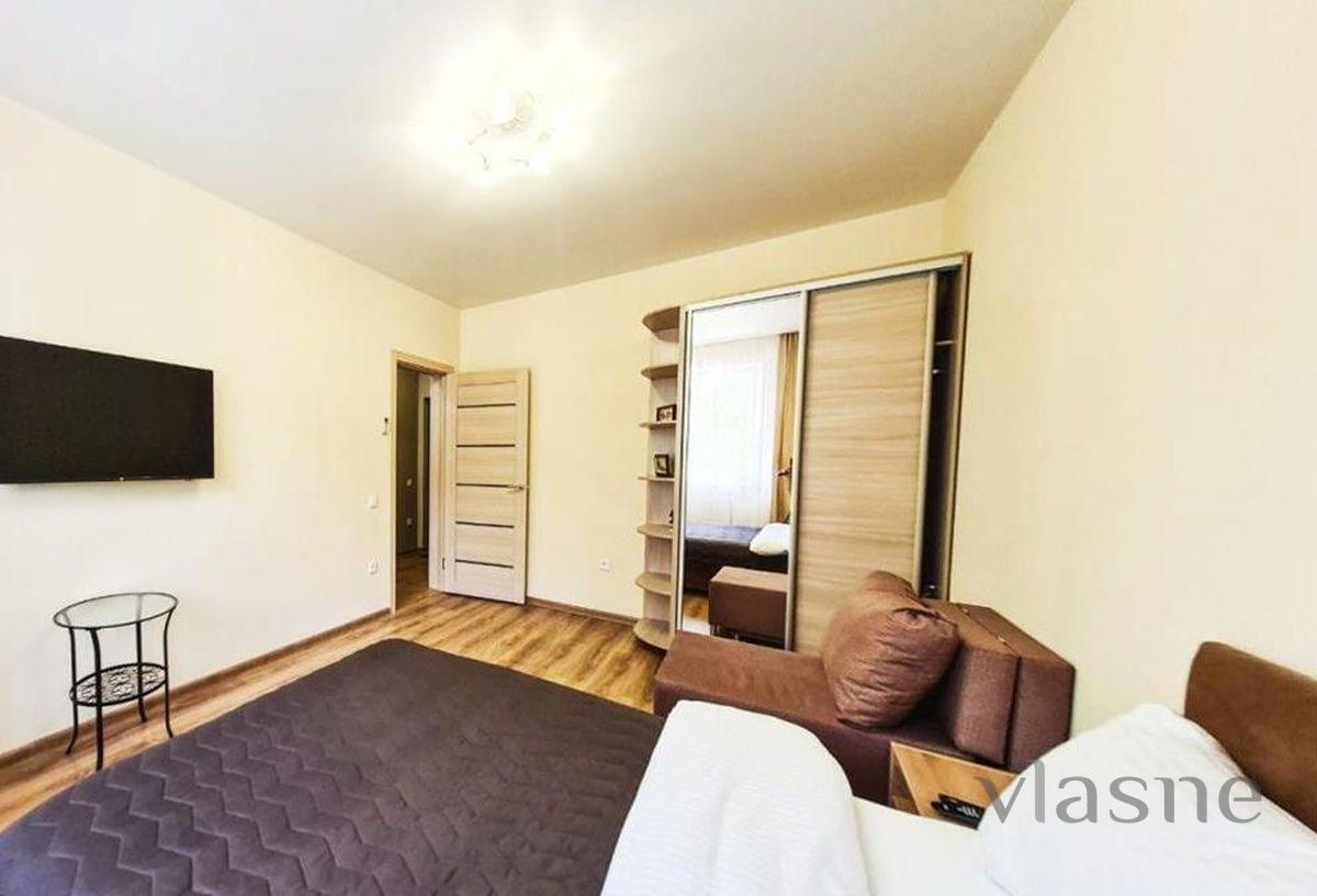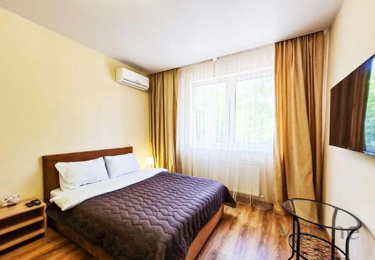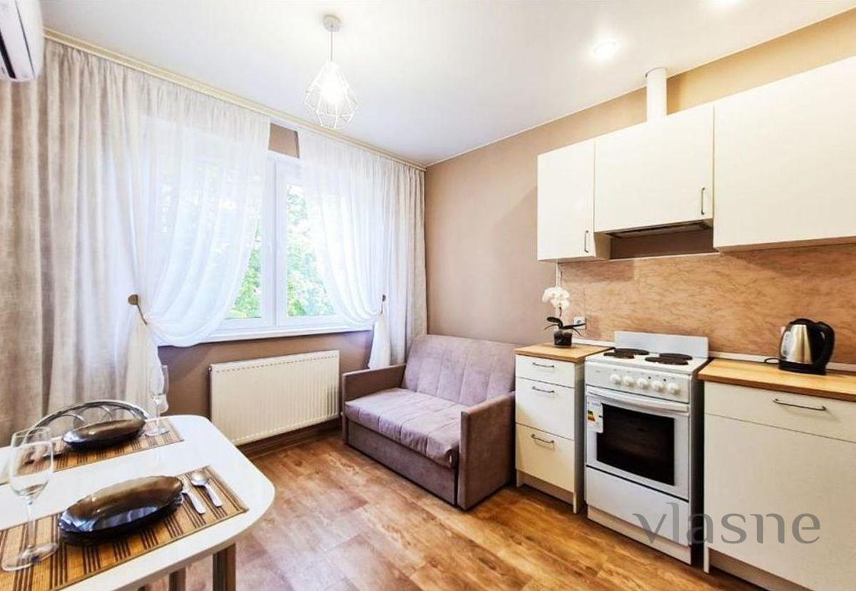 Daily rent 1-room apartment within walking distance from Osokorki metro station (10 minutes) The apartment is ready to move in. There are all the necessary furniture and household appliances (air conditioning, TV, microwave, electric kettle, washing machine). per person Near the house there is a bus stop, Silpo, Komfi and other grocery stores.