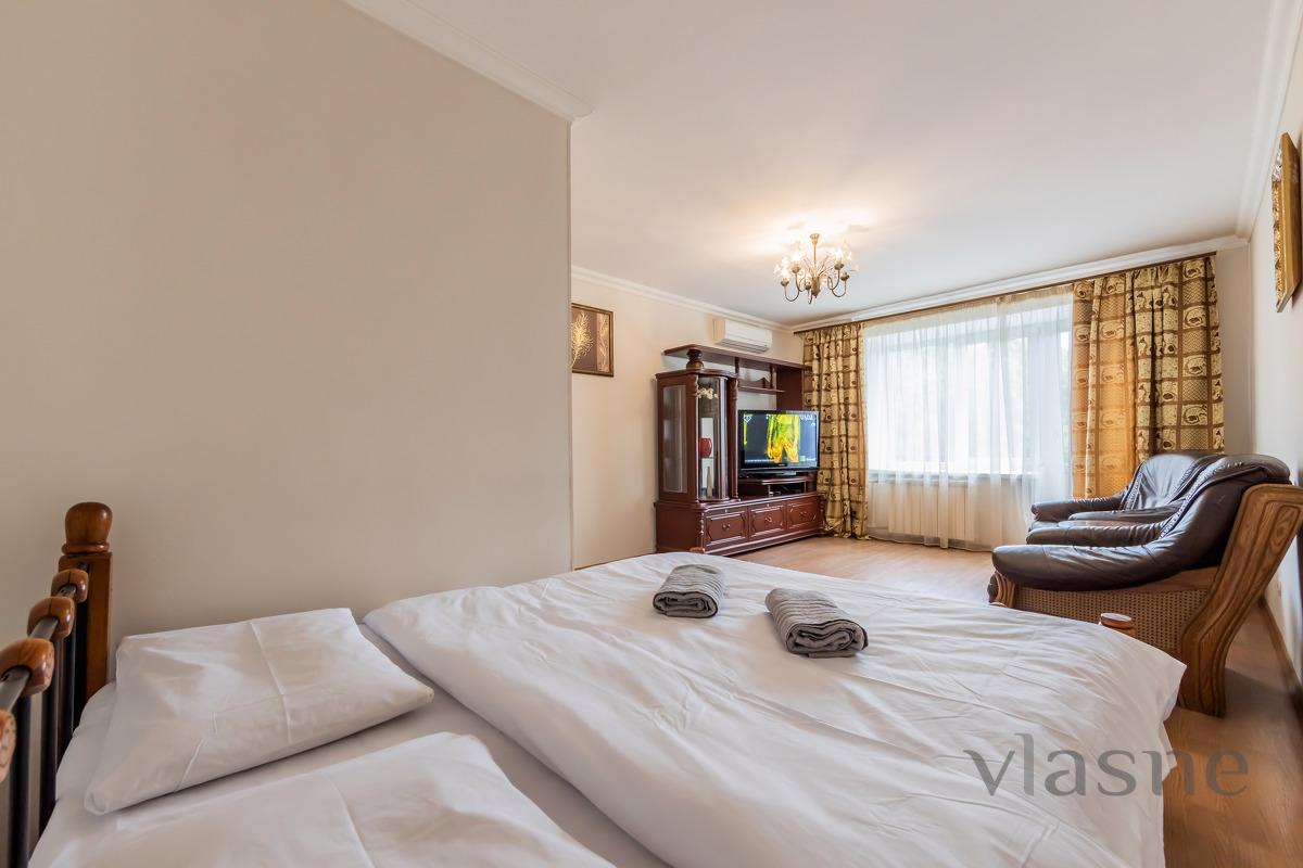 The apartments are located in the center of Kiev, at the address: Shovkovichna, 48 poruch, from the Palats Sportu metro station for the 19th century. walk from the monument "Volodymyr Cathedral", 1.4 km from the monument "Shevchenko Park" and from the 18th century. walking towards the monument "National Sports Complex "Olympic"".