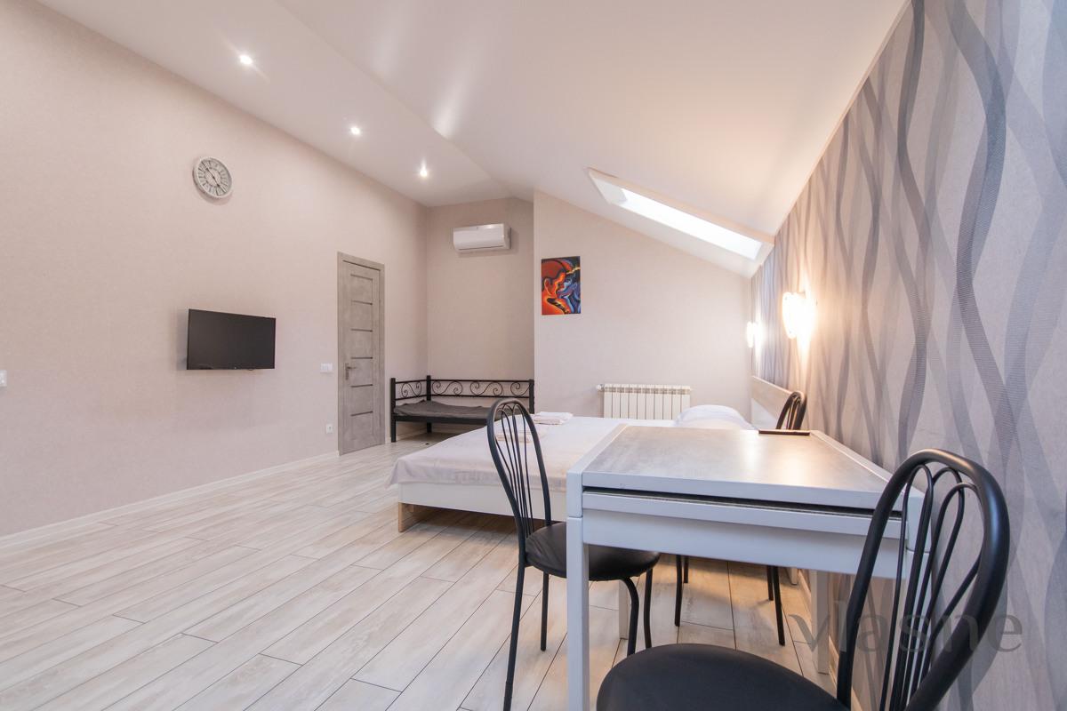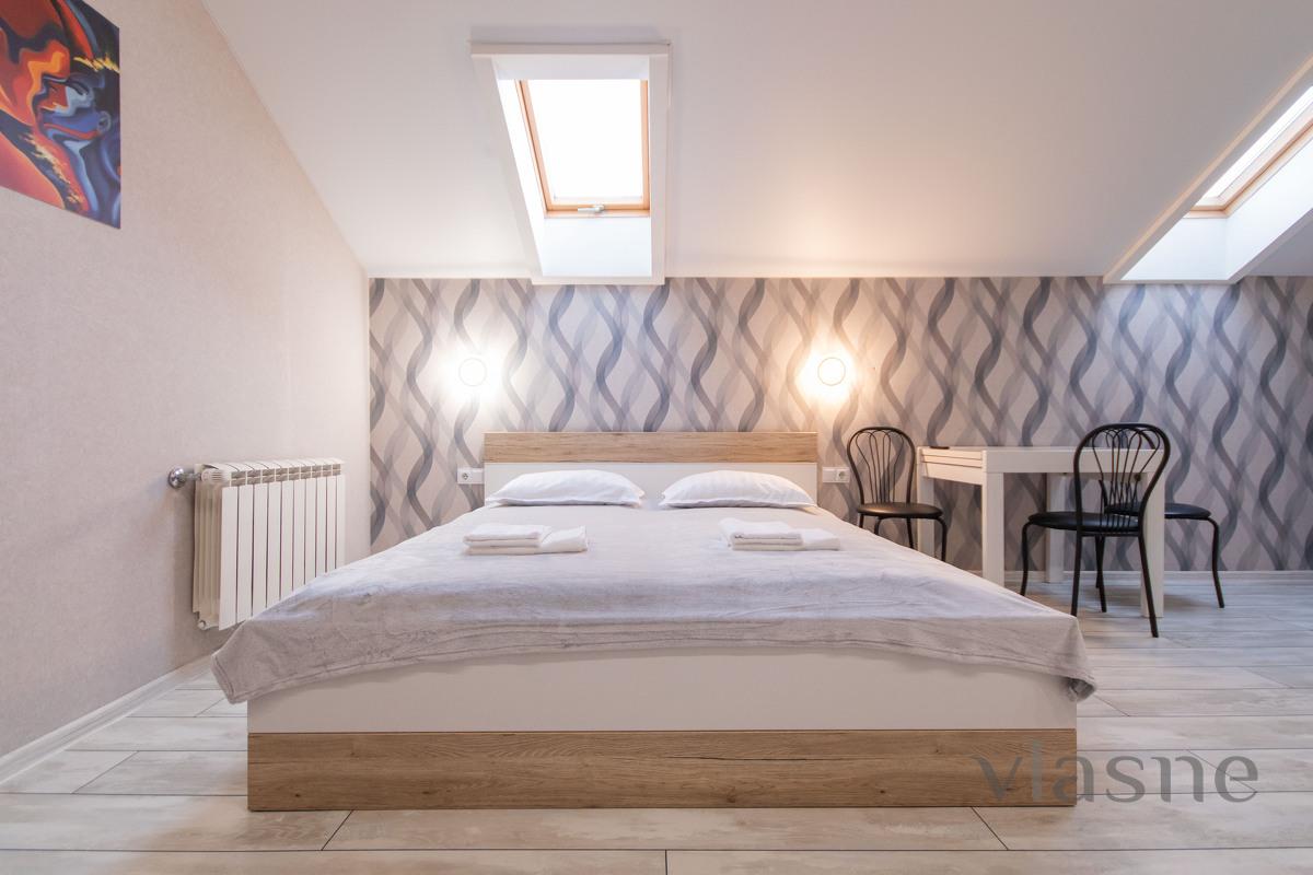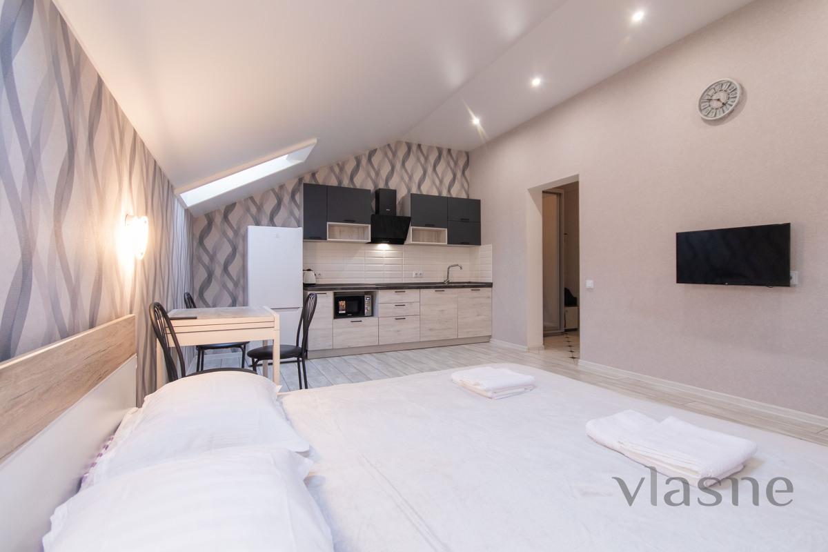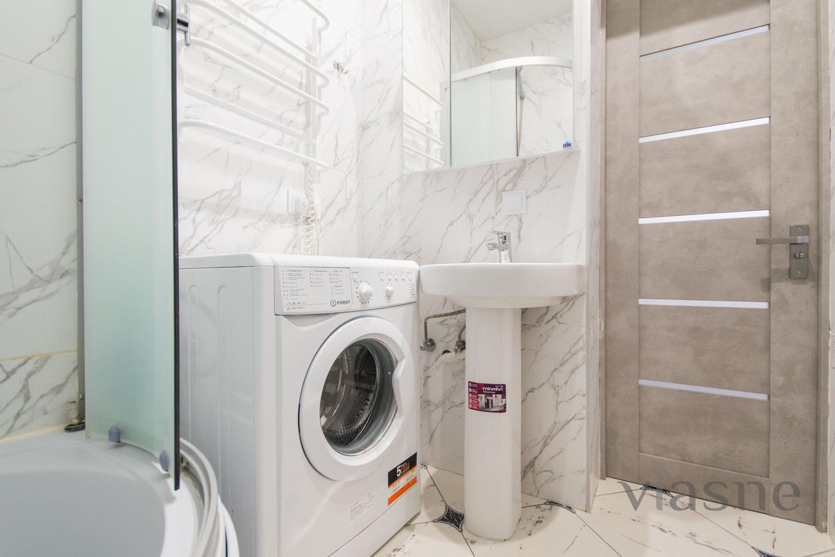 The apartment is known at the address: st. Petlyuri, 5, University metro station (6-minute walk) and Vokzalna metro station (11-minute walk). Nearby are within walking distance: the department store Ukraine shopping center, restaurants, cafes, cafés, the Nova Poshta branch and the Silpo supermarket. Apartments with a simple and fresh renovation, decorated in light colors and comfortable furniture.