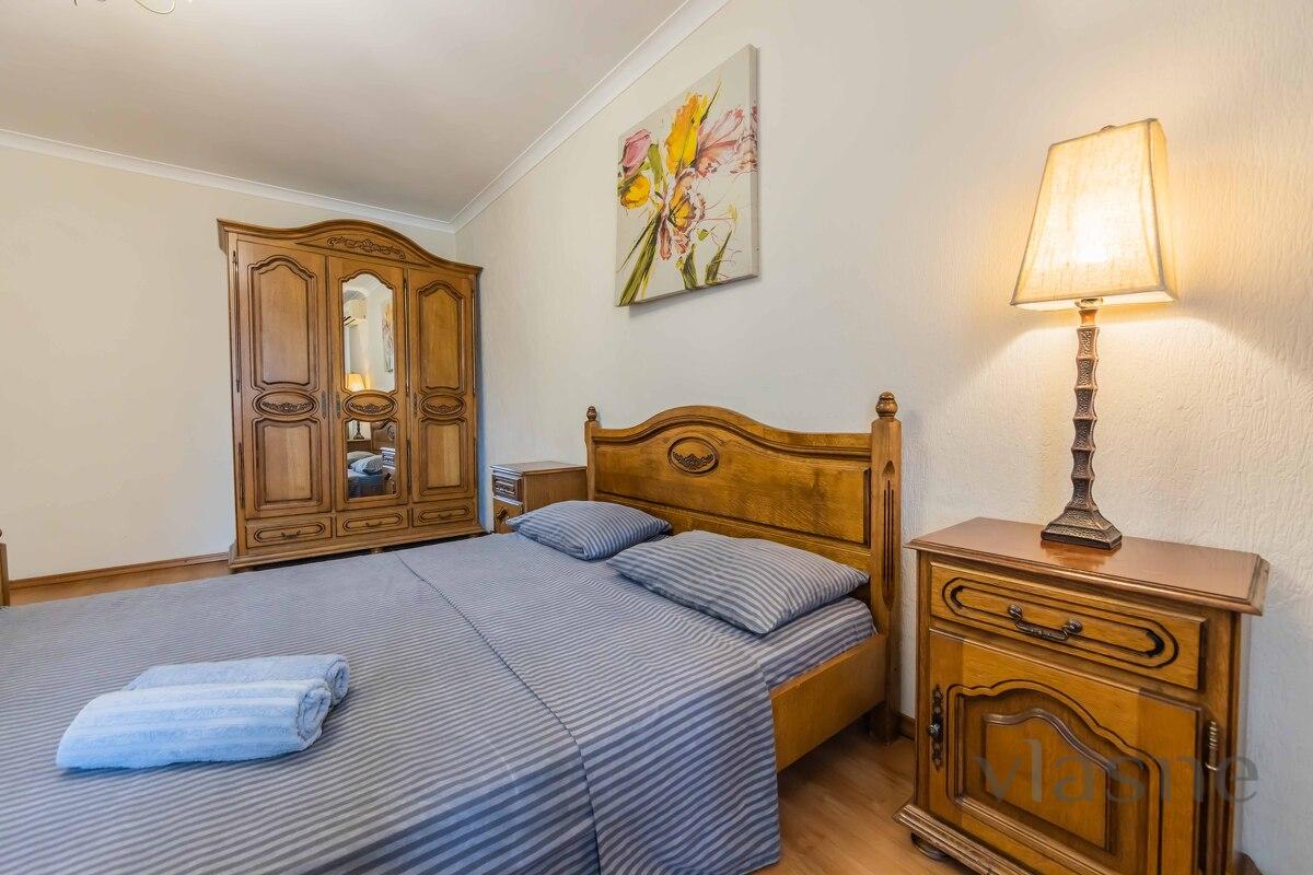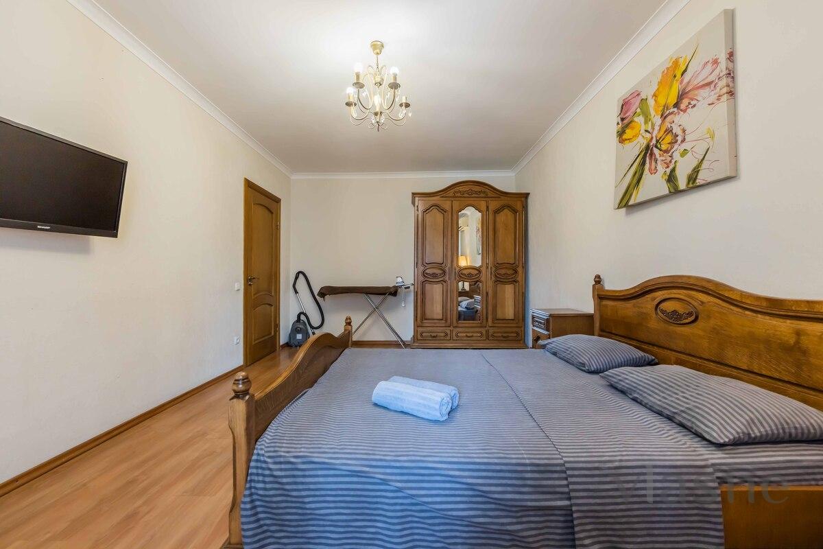 An ideal choice both for home and for a small company (up to 4 people). The bedroom has a double bed, a cabinet, a large wardrobe, and a flat-screen TV. In the living room there is a large, comfortable sofa that can be folded out for a storage space, a chest of drawers and a TV. For your comfort, an air conditioner is installed in the apartment. The kitchen is fully equipped with everything necessary: * gas stove with hood; * microchickenweed; * electric kettle; * fridge; * gas stove The bathroom is furnished with a manual shower cabin and a sink with a mirror. Guests are provided with fresh, white linens and clean towels.