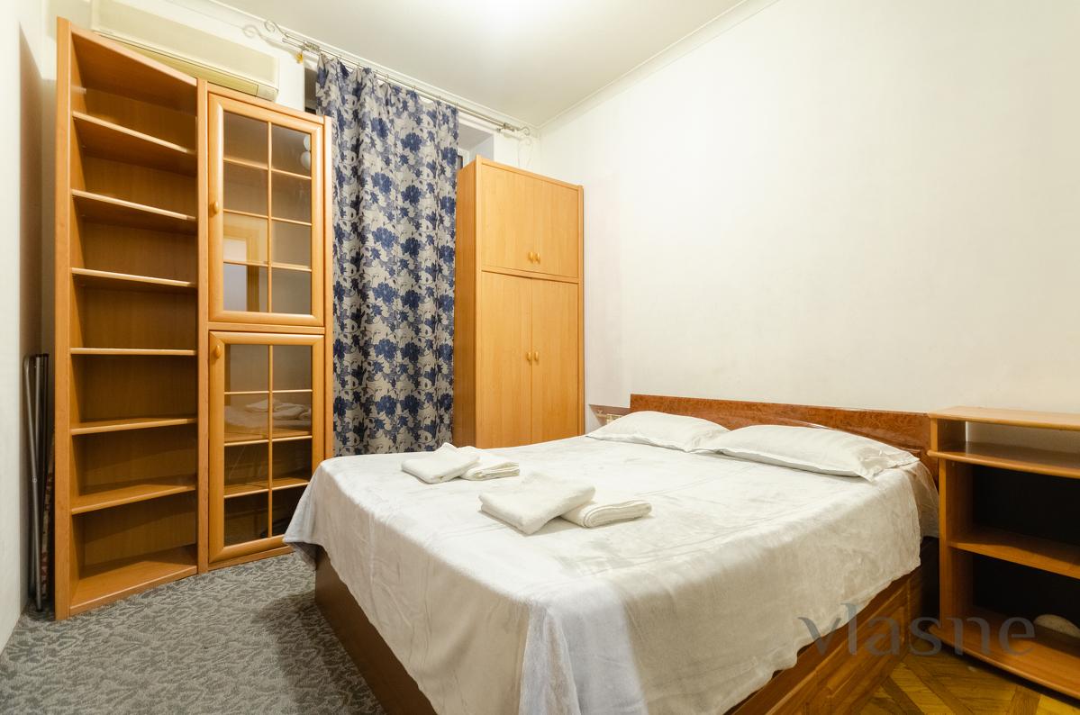 The apartment is decorated in rich light colors with rich elements and laconic wooden furniture. In the middle there is a kitchen, a living room, 2 bedrooms and a bathroom. The kitchen is small, but light and very quiet, it contains all the necessary furniture and appliances for comfortable living: a kitchen counter with a work surface and a sink, a refrigerator, a stove with an oven, a microwave oven a stove, an electric kettle and a folding table with chairs. The living room is painted in light gray tones with two accent walls in a violet color. The living room has all the necessary furniture for a quiet and relaxing time: a sofa, a sideboard, a large chest of drawers, a table and a coffee table. The first bedroom is decorated in pastel colors with creative colors and comfortable furniture. For your convenience, the room has all the necessary furniture, including: a double bed with an orthopedic mattress, bedside tables, a large wardrobe with a tall mirror. Wardrobes and bedside tables are made in light turquoise shades. The other bedroom is bright in pastel and natural colors with all the necessary furniture for a comfortable stay: a double bed with an orthopedic mattress, bedside tables, a wardrobe, a sideboard and a bookcase. Sanvuzol has a bathtub, in the middle there is also a sink with a bedside table and a mirror. Forever pure white and fresh towels. The apartment has WI-FI and the most necessary household appliances: air conditioner and TV. Availability of renting an apartment on weekends - check with the manager. For quick reservations, call at any time!