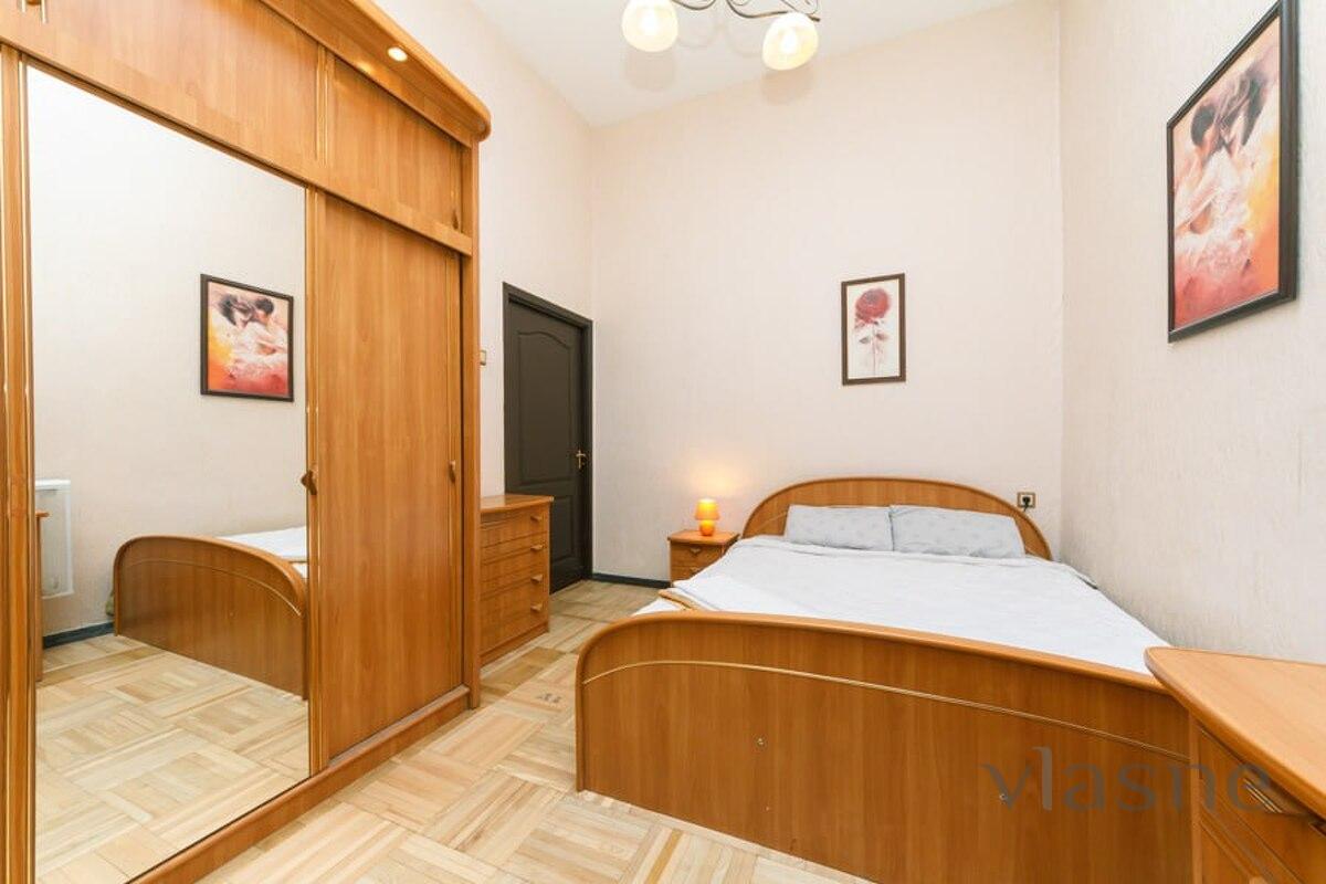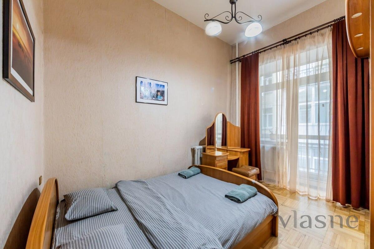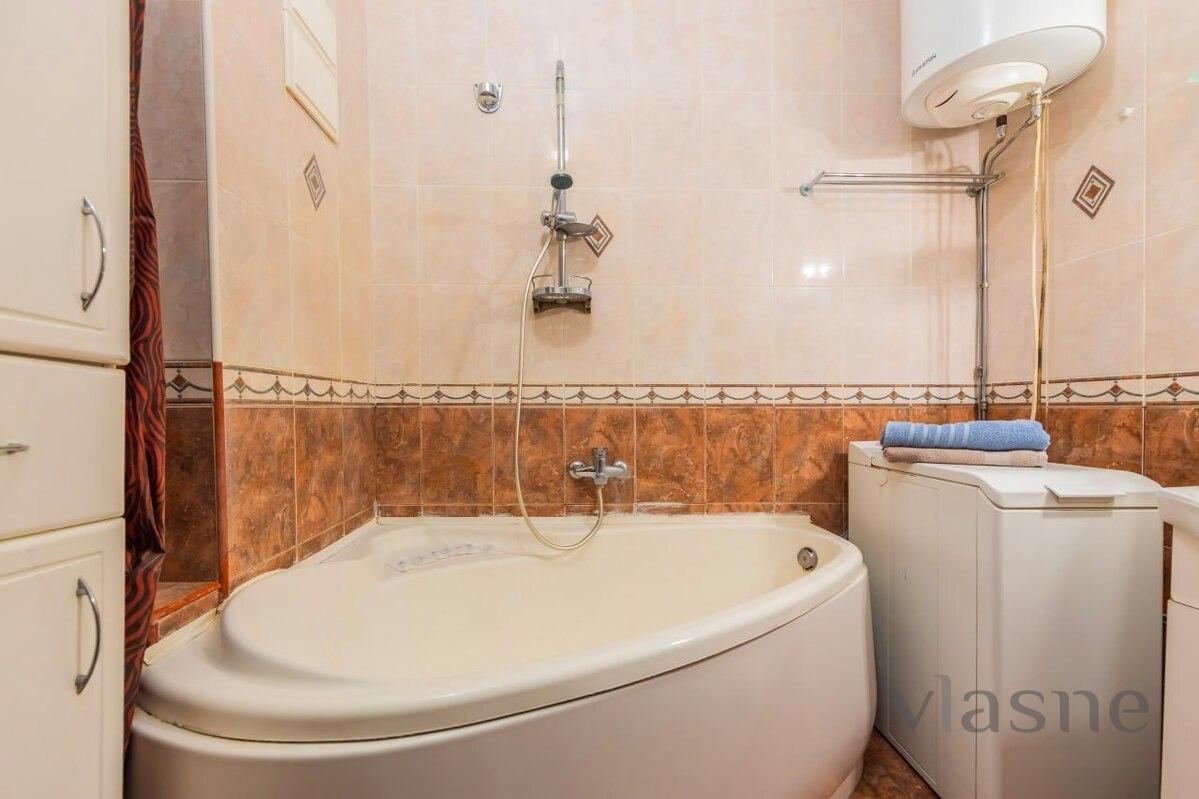 In the kitchen, in addition to the furniture, there is a living area. Everyday appliances are necessary for a comfortable stay: refrigerator, gas stove, oven, range hood, electric kettle, microwave oven. First bedroom in Vikon in light colors. In the middle there is all the necessary furniture for the reception area: a double bed with an orthopedic mattress, bedside tables, a wardrobe, an air conditioner. The other bedroom contains: a double bedroom with an orthopedic mattress, a wardrobe for special speeches and a dressing table. The third bedroom is decorated in soothing colors. All the necessary furniture for a quiet stay has been provided: a double bed with an orthopedic mattress, a wardrobe, an air conditioner. The apartment has air conditioning and WI-FI for a comfortable stay. The washroom is connected to the bathtub, there is a sink in the middle, a hanging mirror with a shelf and a washing machine. Forever you will see clean towels and fresh, stylish whiteness. Availability of renting an apartment on the weekend - check the phone number.