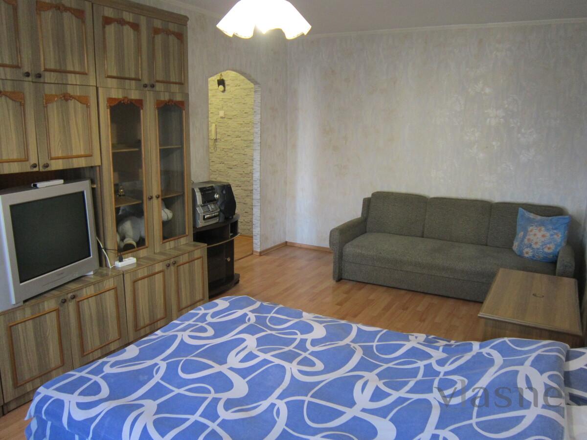 I rent 1-room. sq., daily, weekly, monthly, business class, Hort. rn., owner. I will delight you with cleanliness, comfort and coziness! Center of the Khortitsa region. Good Transport Interchange, Nearby There Are Transport Stops, ATB Supermarkets, Silpo, Other Shops, A Market, Guarded Parking! Not smoky, sleeping places 2 + 1 (large double bed + folding sofa), furniture, boiler, refrigerator, TV, electric stove, electric kettle, microwave oven and other necessary equipment, dishes, cable TV, Internet and Wi-Fi, clean linen and towels, hot water.