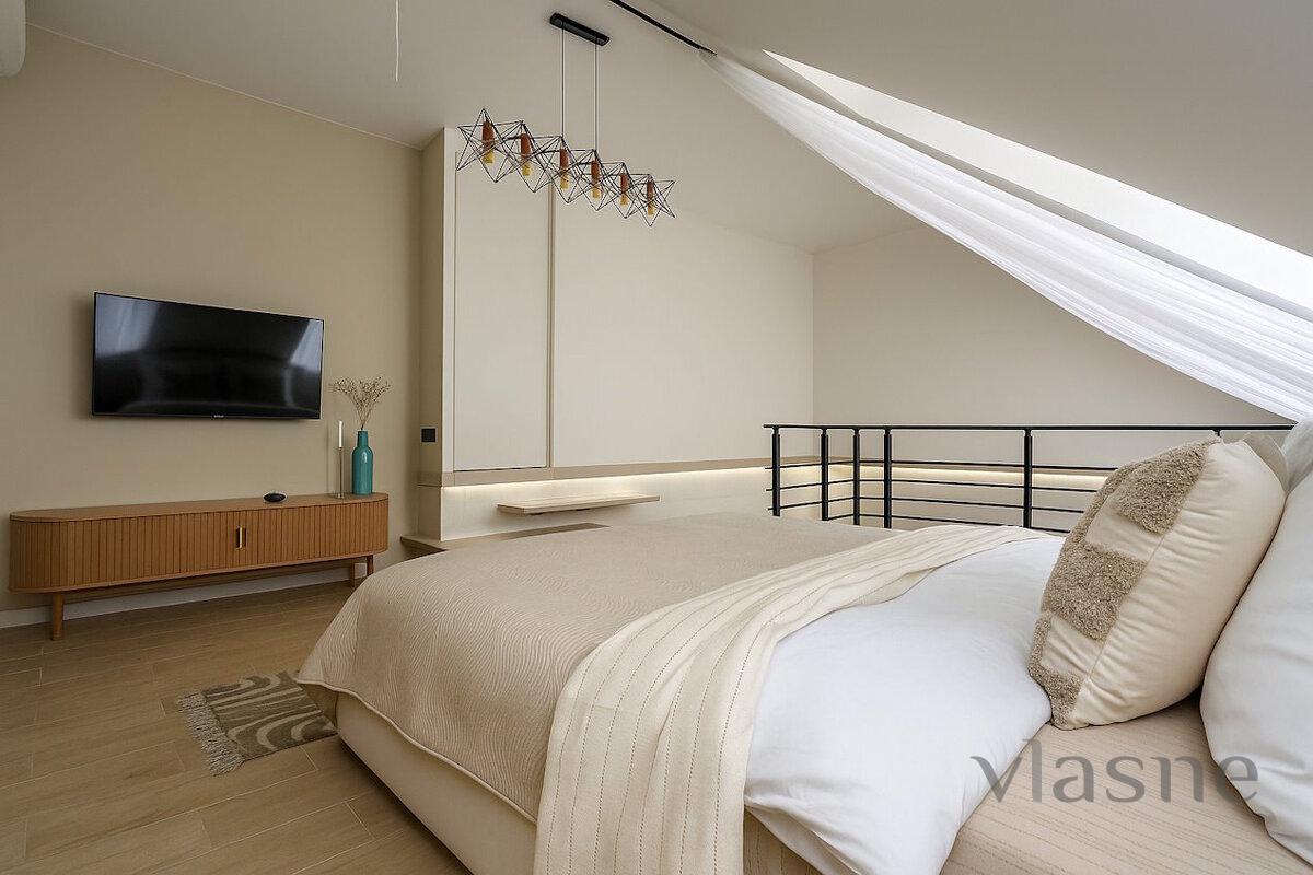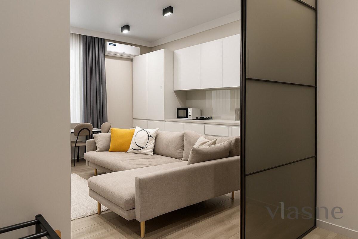 Stylish two-level VIP apartments are equipped with appliances and furniture - the kitchen has everything you need to cook and eat. Free Wi-Fi is available. There is a separate dressing room where you can fold and iron your clothes if necessary. Clean bed linen and towels are provided. The maximum number of guests is 3 people.