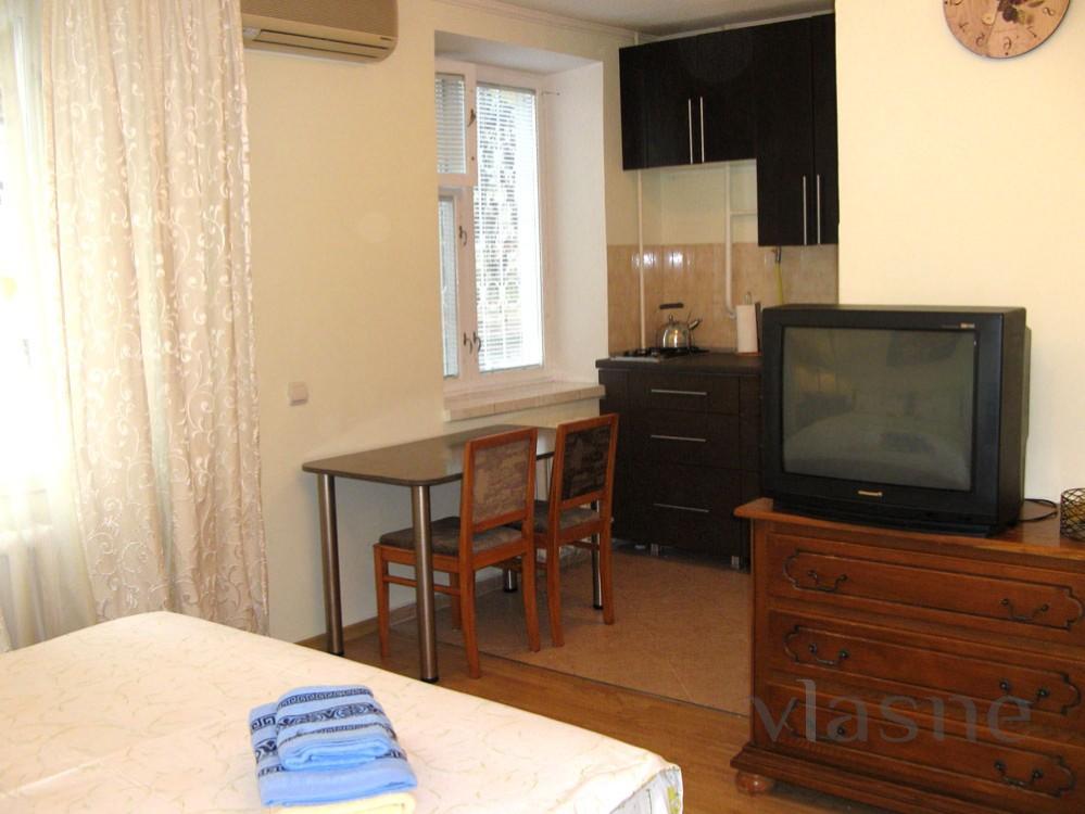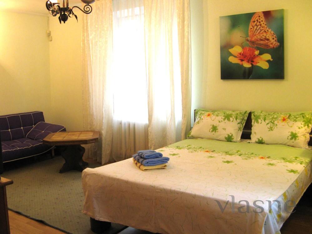 Comfortable and cozy apartment. Studio. The very center is located on the main street in the heart of the city - Kiev house 21. There is everything you need: TV, air conditioning, internet wi-fi, hot water, all kitchen and bedding, etc. all new furniture. In the courtyard you can put your car, there are also a number of paid parking.