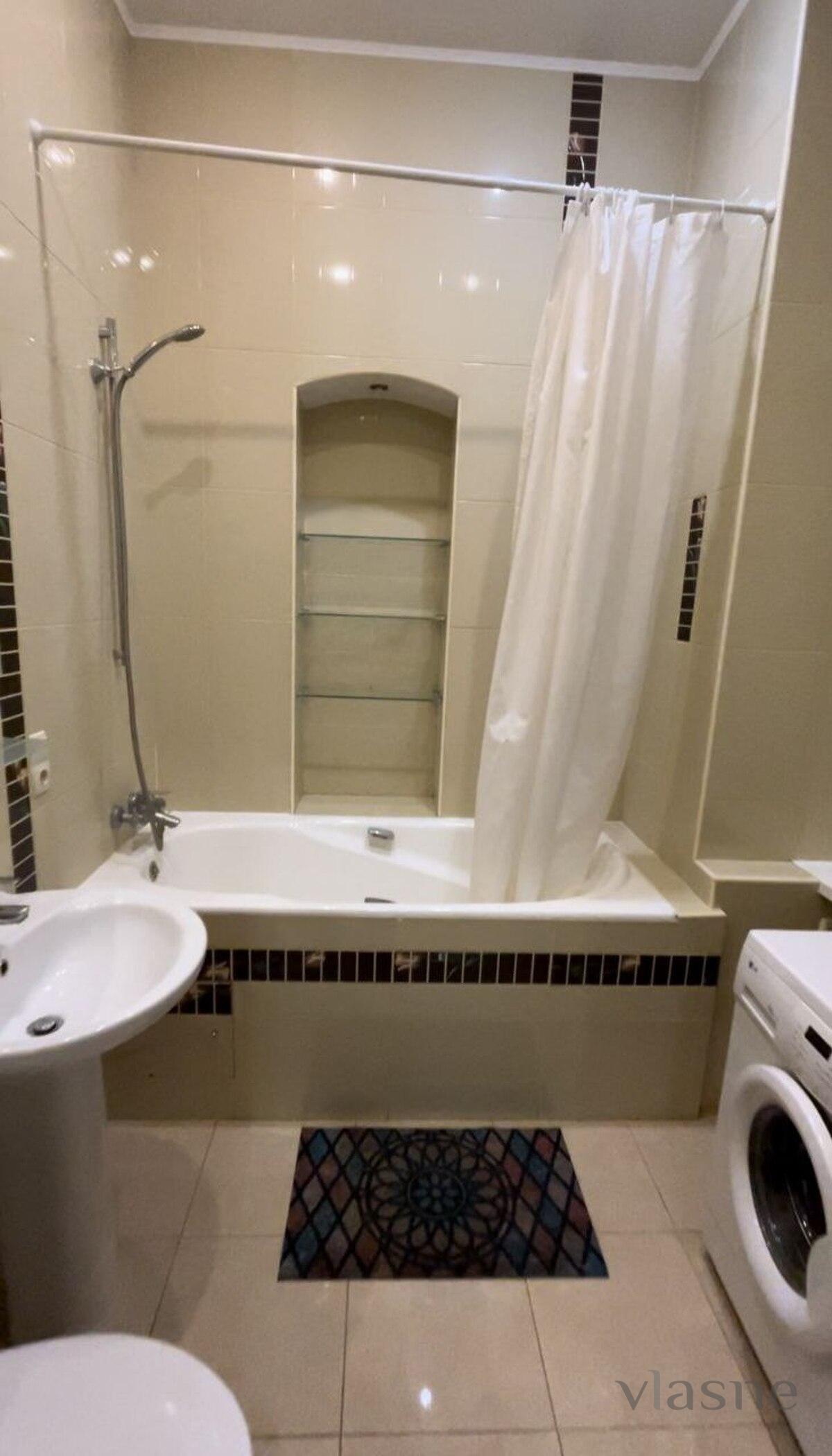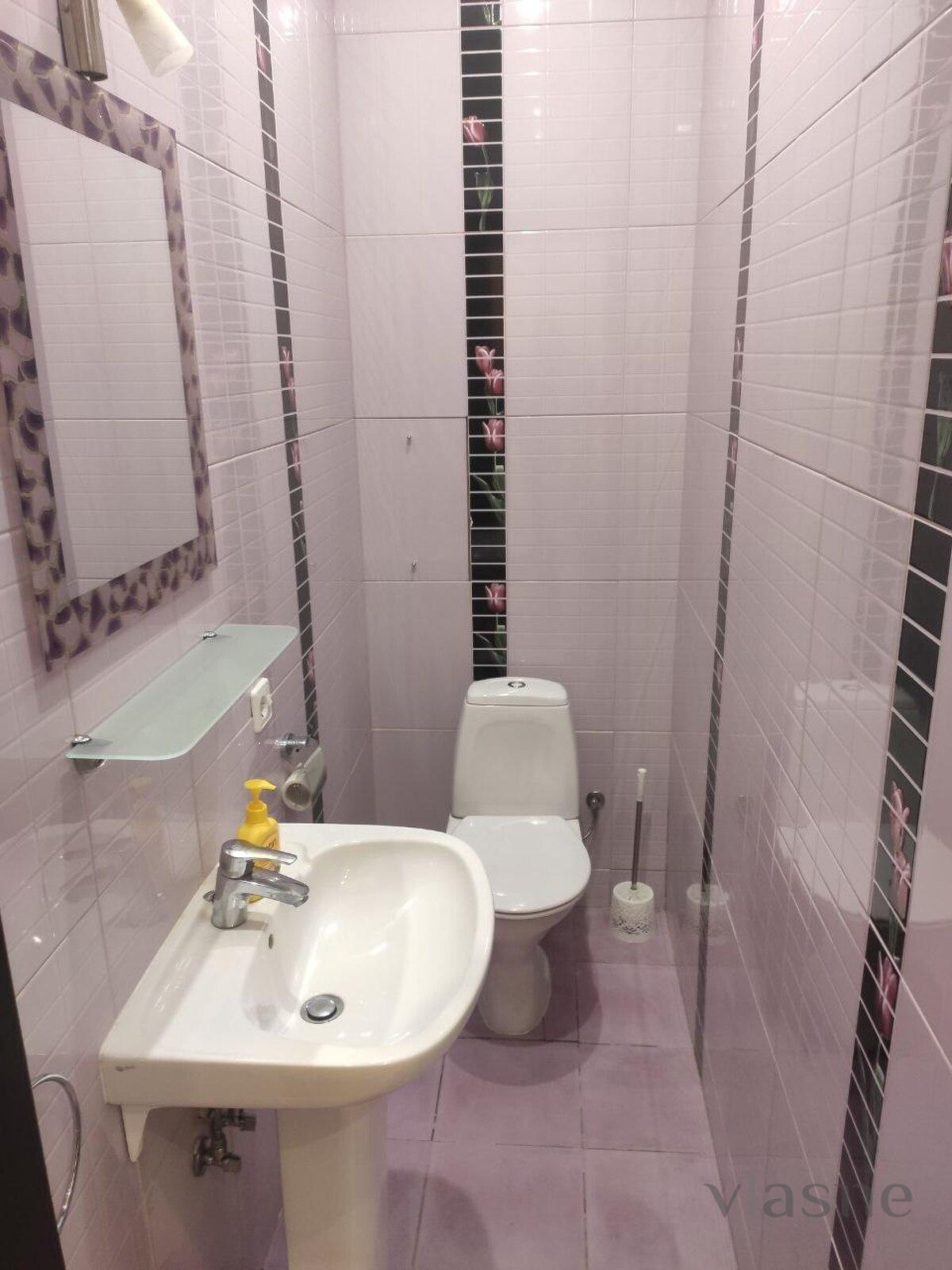 Є окрема вбиральня. Ванна кімната світла, всередині розміщені: умивальник, підвісне дзеркало з поличкою та пральна машина, ванна з поличками для ваших дрібниць. Завжди в наявності чисті рушники та свіжа постільна білизна.