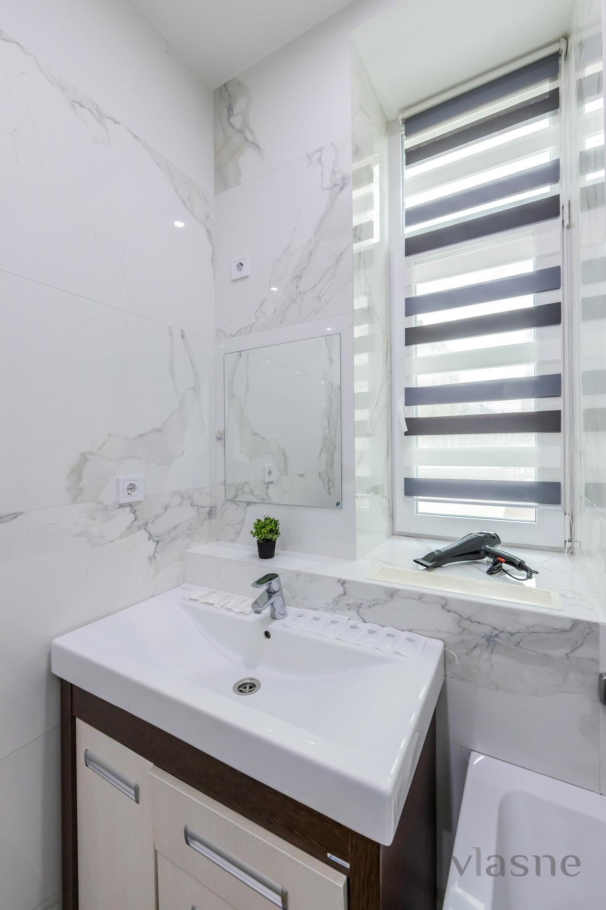 Не залишилася без вікон і ванна кімната. Тут є зручна ванна, просторий умивальник із дзеркалом.