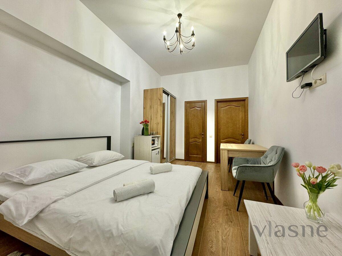У зоні спальні надані всі необхідні меблі та техніка для комфортного відпочинку: двоспальне ліжко з ортопедичним матрацом, зручний диван, журнальний столик, телевізором.
