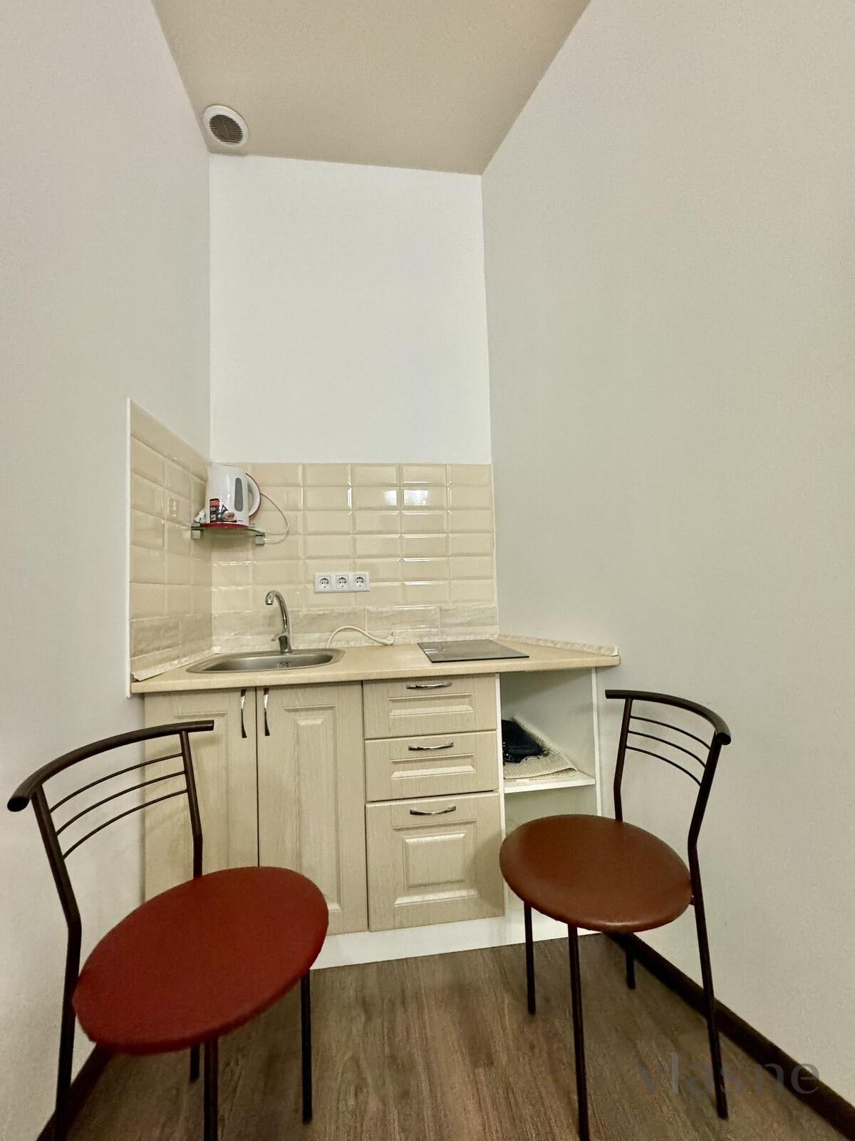 Є зона міні-кухні має робочу поверхню та вбудованою раковиною.