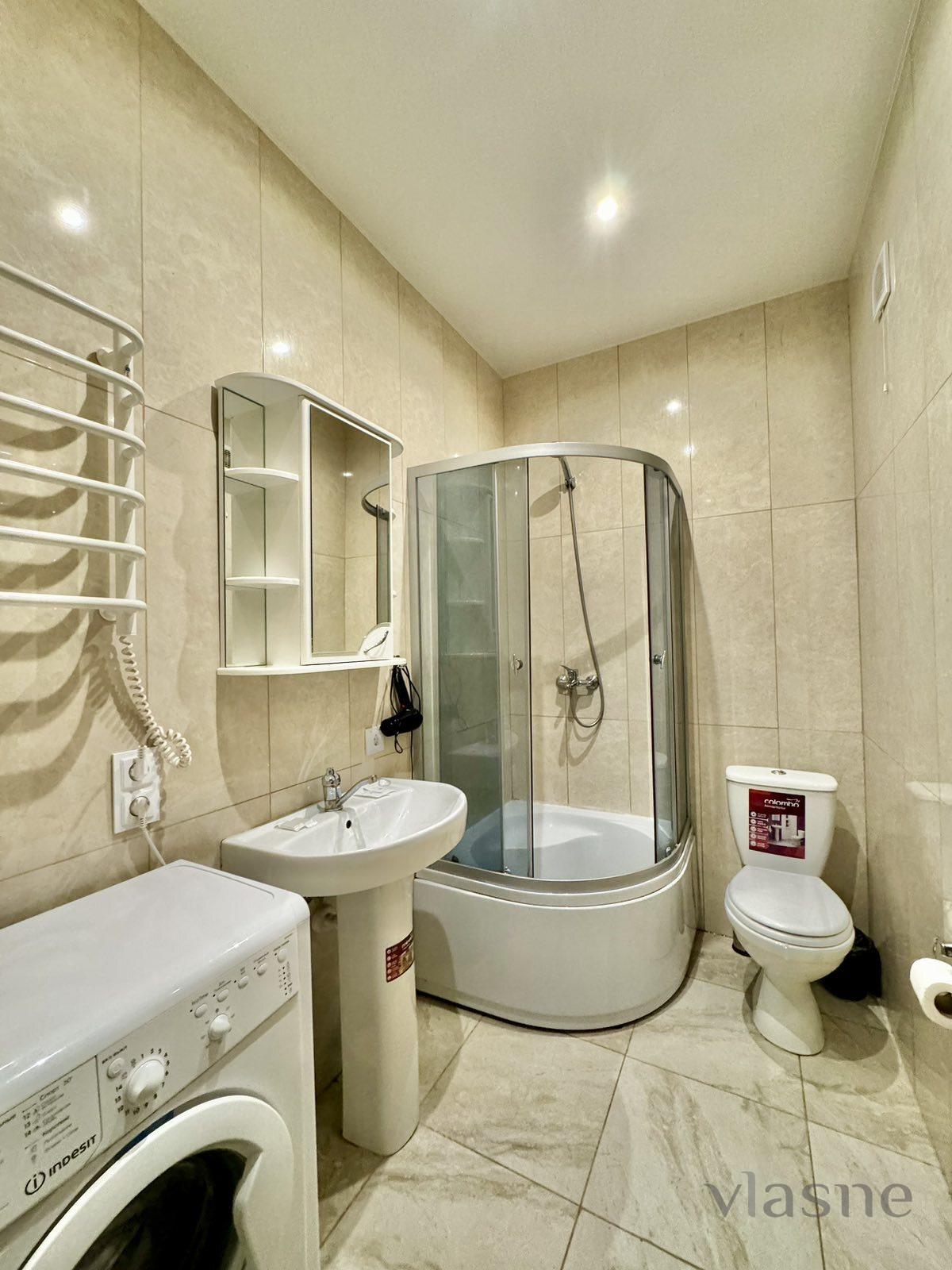 Санвузол поєднаний з душовою кабіною, всередині є раковина, навісна тумбочка з поличками та дзеркалом, а також пральна машина. В наявності завжди свіжа постільна білизна, чисті рушники та необхідні засоби гігієни.