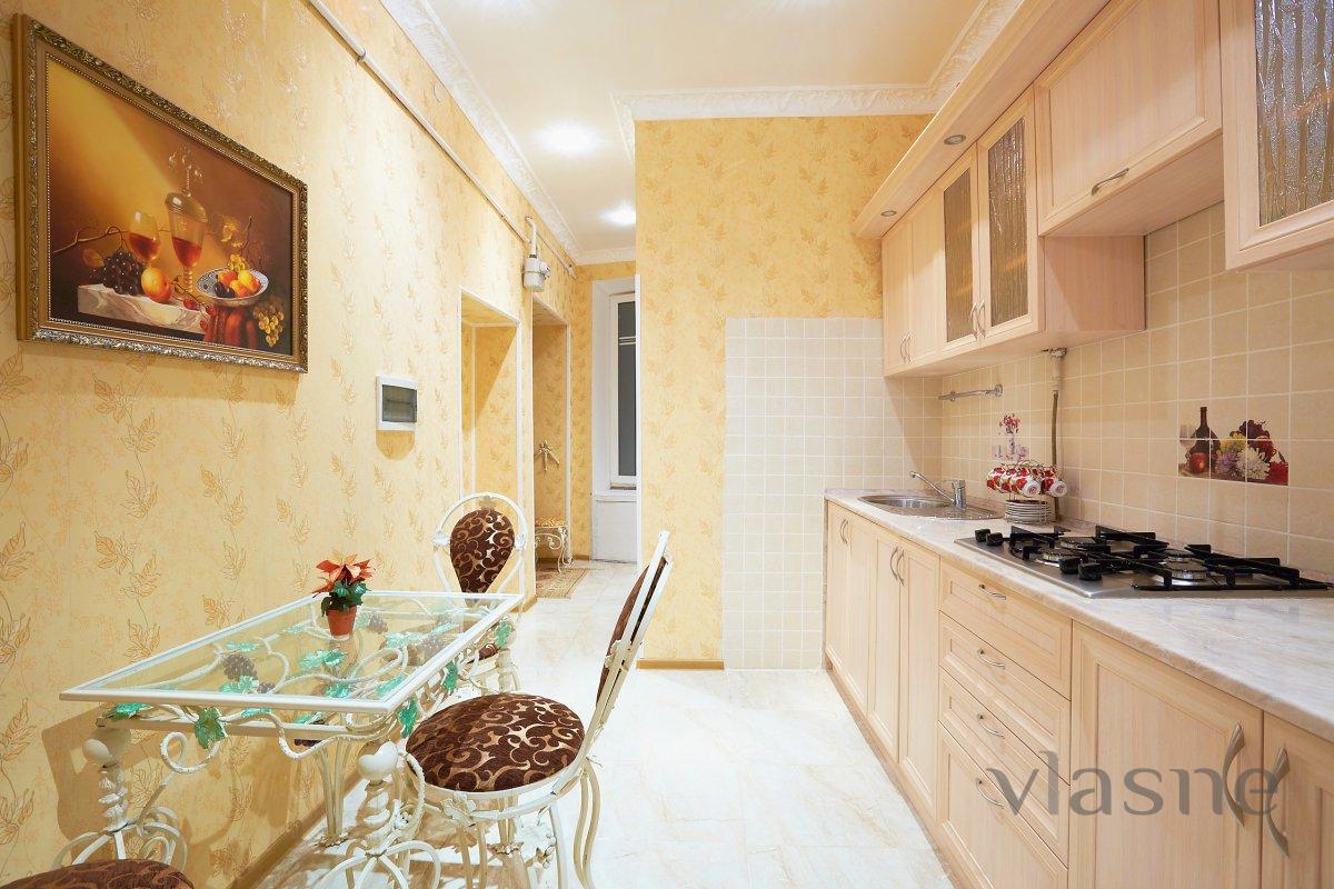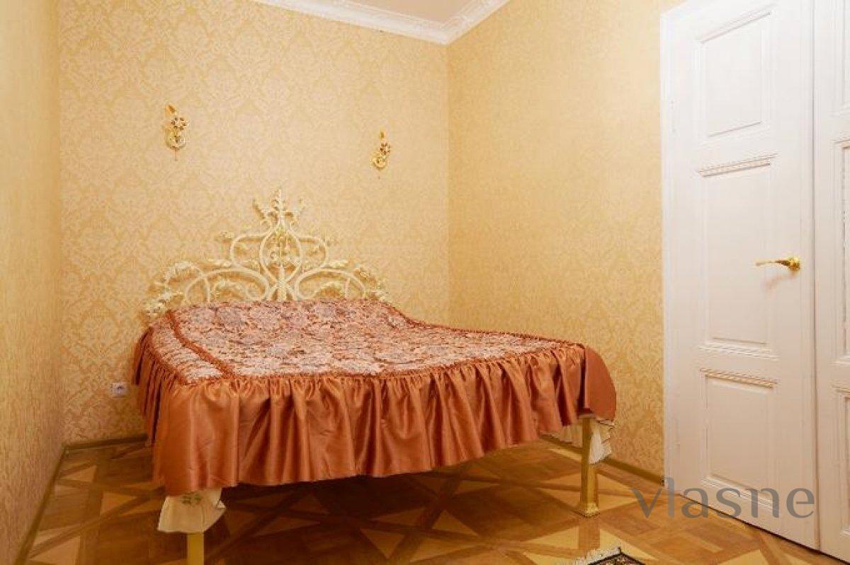 Двухкомнатная квартира в центре для аренды посуточно, находится в исторической части города в 5-ти минутах от оперного театра. Квартира уютная, общая площадь 55 м.3-ОХ этажного Австрийского дома. В квартире бронированные двери. А теперь то, что есть в квартире. Из мебели: 1 двухспальный диван, кованый столик - эксклюзивный ,кованная кровать.